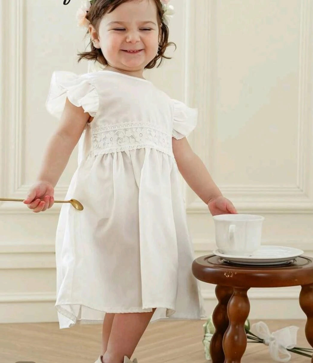The top is delicately embroidered with subtle shimmer, while the satin skirt flares gracefully for a perfect party-ready look.
