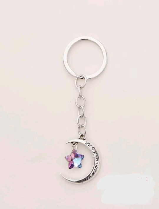 Add a stylish touch to your keys with this unique keychain featuring a sleek metallic crescent and a sparkling crystal star