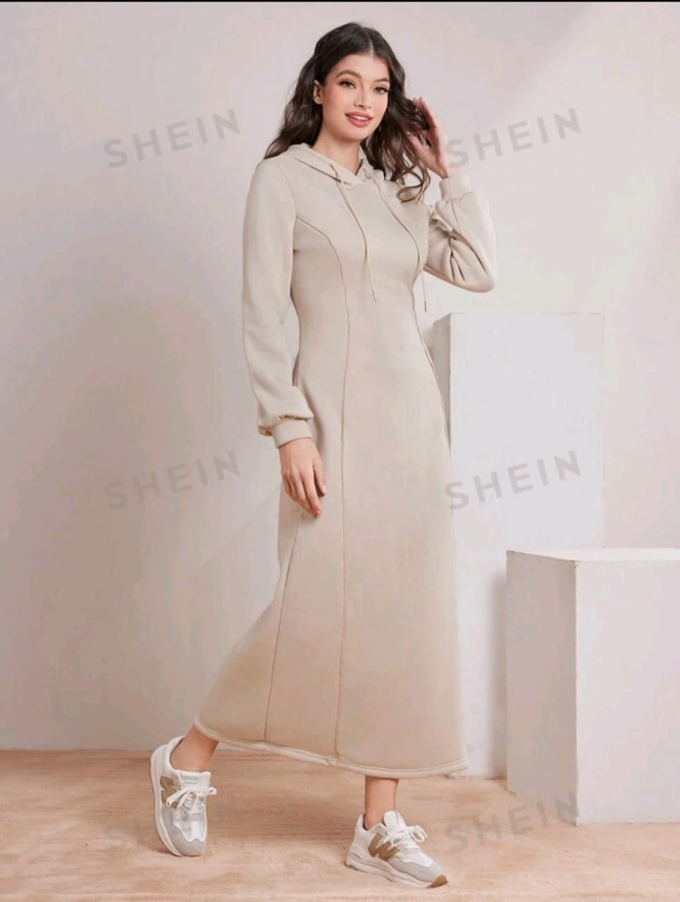Enjoy a relaxed and sporty vibe with this practical long hoodie dress