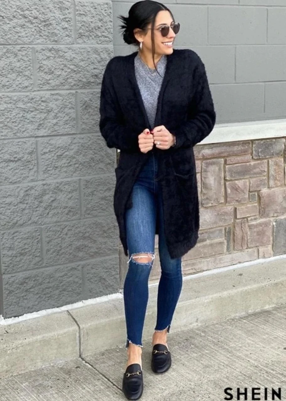 Made from soft, lightweight wool, it features a relaxed open-front design without buttons, making it easy to style over both casual and formal outfits