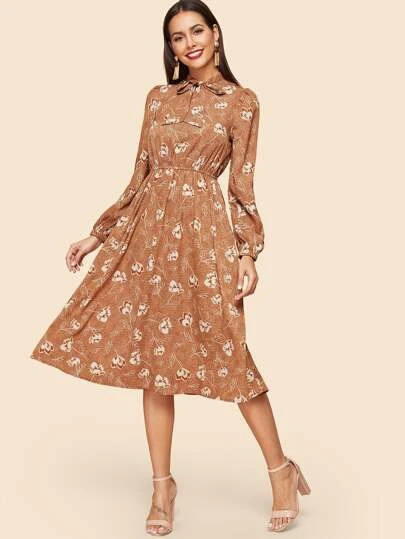 Design: Midi length, embroidered front panel, elastic cuff sleeves