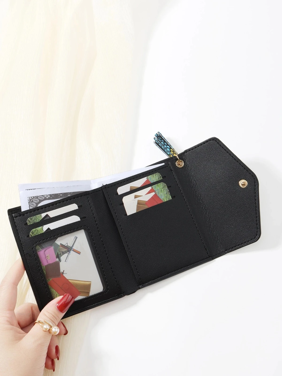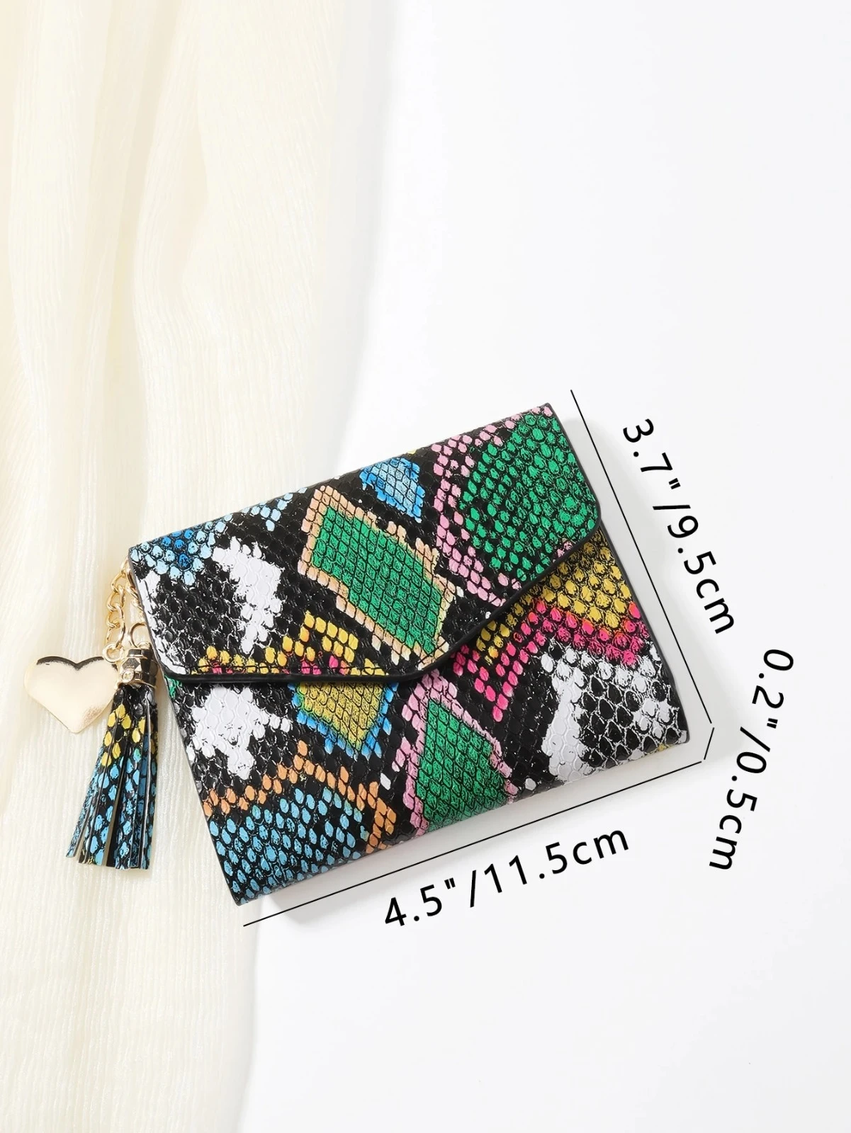 Elegant mini women’s wallet with stylish snake print contrast, featuring a shiny metal heart and chic tassel. Lightweight and compact—perfect to fit in any bag. A great daily accessory or a thoughtful gift for Christmas, Valentine’s Day, or birthdays
