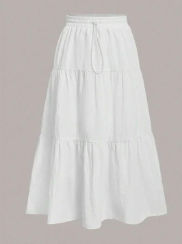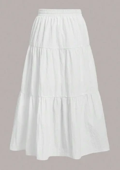 A long white skirt with soft tiered design for a feminine and flowing look